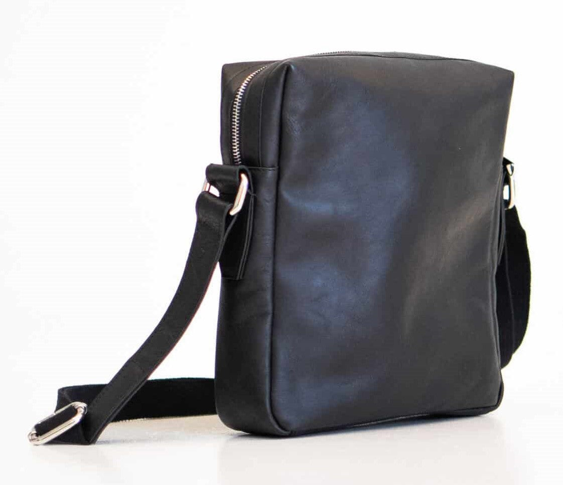 Shoulder Bag No. 37 is a handmade shoulder bag produced in Estonia from genuine leather. It features a larger zippered compartment and a smaller zippered pocket on the exterior. Inside the main compartment, there are two pockets: one open pocket and one zippered pocket. The full-grain leather shoulder strap is adjustable. This is a handmade piece that will last long and serve you well.